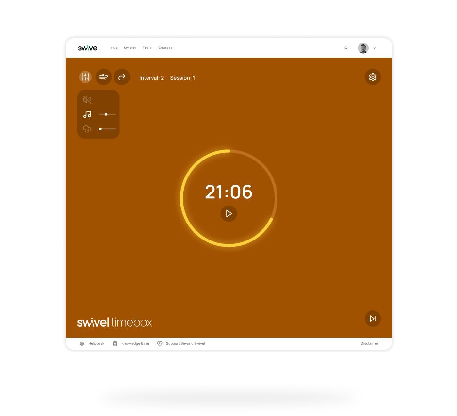 Quick, practical tools designed by ergonomists, occupational therapists and wellbeing specialists, backed by Swivel R&D. Manage stress, reduce mental fatigue, and support psychological safety at work. From a structured focus platform, to better meetings engagement tools; and guided breathing training tech, help your team reset and refocus with ease.